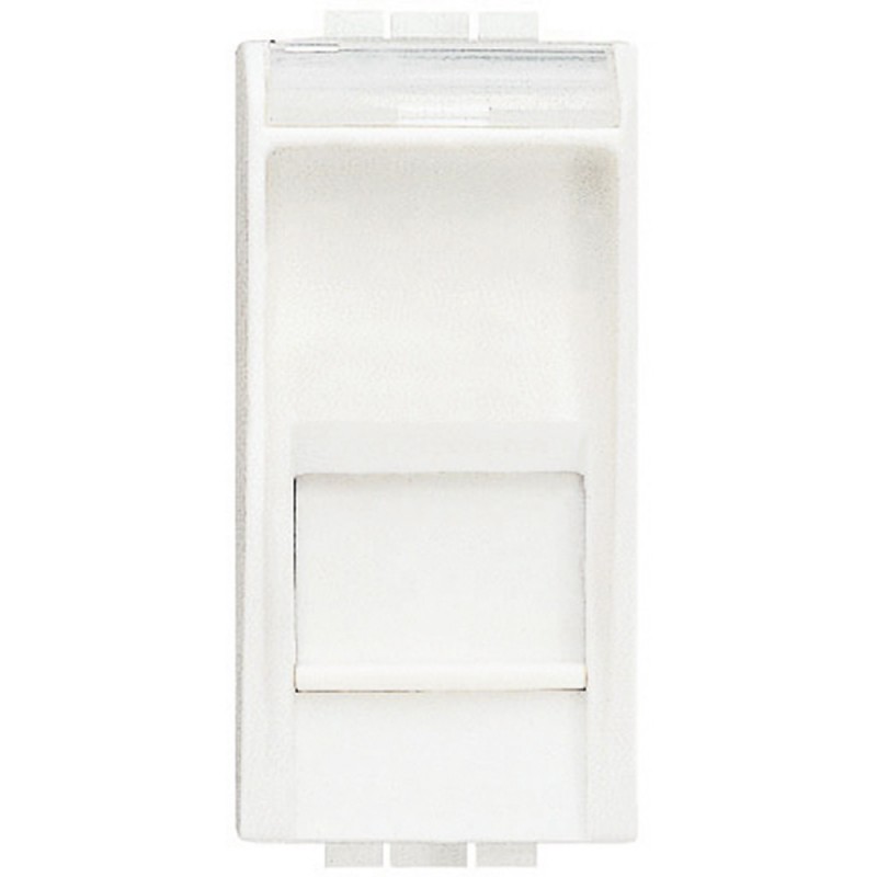 Prise de données rj45 UTP catégorie 5e Bticino LivingLight couleur blanc. La prise de données utilisée pour connecter les PC au réseau dispose d'une connexion par câble où vous n'avez pas besoin de pince. Connexion Toolless.