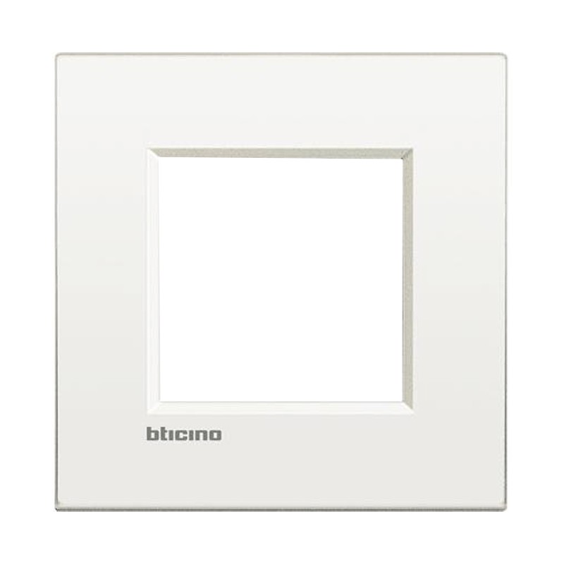 Plaque AIR 2 modules (fruits, lieux) Bticino LivingLight couleur blanc. La plaque ne peut être installée que sur le support LN4702C. Il n'est pas possible d'installer la plaque sur les autres séries Bticino mais uniquement sur la série LivingLight.