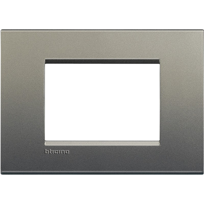 Plaque Carrée 3 modules (inserts, places) Bticino LivingLight couleur avenue. Elle ne peut être installée que sur le support : LN4703. La plaque n'est pas installée sur les autres séries Bticino mais uniquement sur LivingLight.
