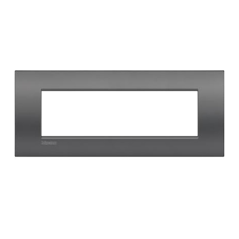 Plaque Bticino LivingLight AIR 7 modules (fruits, lieux) couleur street. La plaque ne peut être installée que sur le support LN4707C. Il n'est pas possible d'installer la plaque sur les autres séries Bticino mais uniquement sur la série LivingLight AIR.