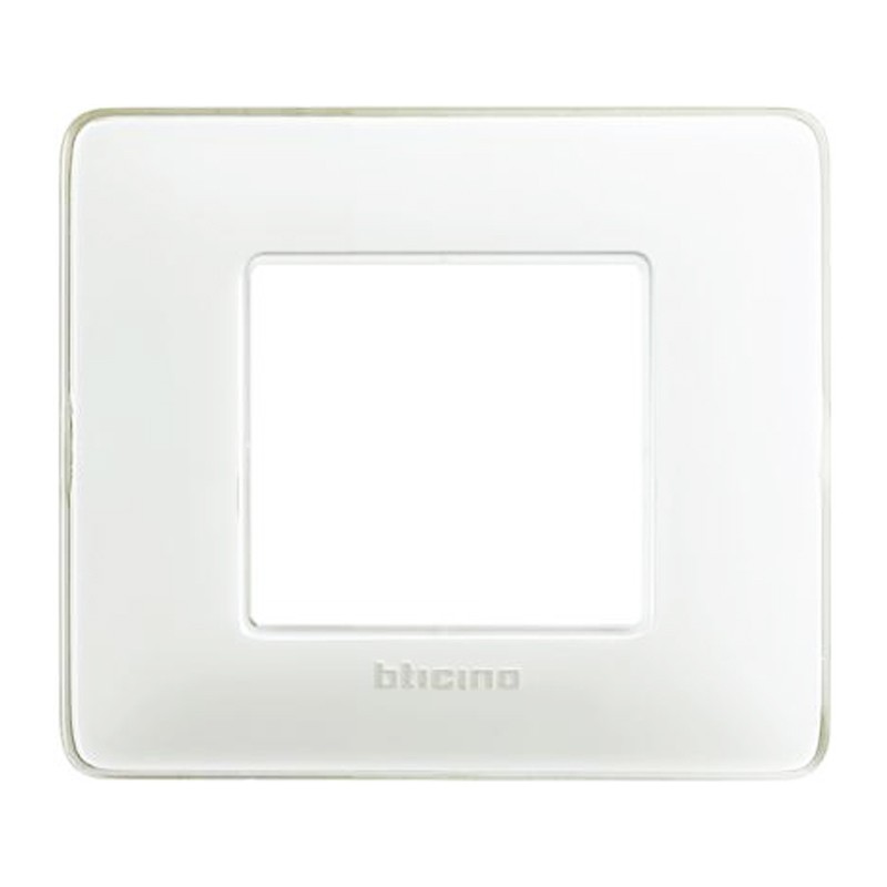 Plaque 2 places Bticino Matix pour support 500SM2A, couleur : GLACE. Vous ne pouvez pas installer la plaque sur d’autres séries Bticino, mais uniquement sur les séries Matix.