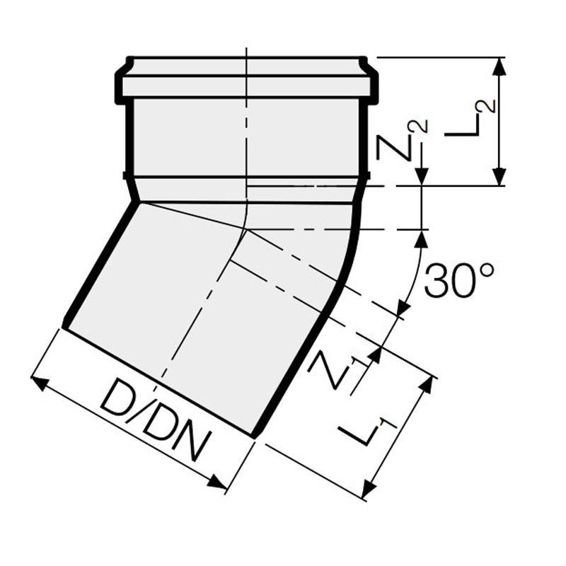 Coude 30 degrés pour tuyaux d'évacuation insonorisant en PP polypropylène Valsir PP3 à emboiture avec les caractéristiques suivantes :