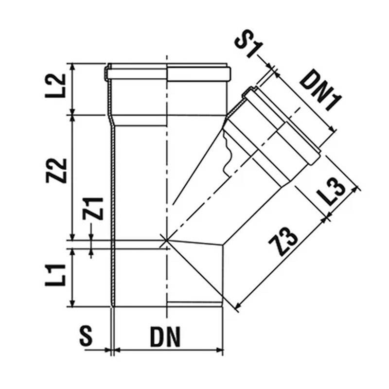 Culotte 45 degrés Redi pour système d'évacuation insonorisant à emboîter avec les caractéristiques suivantes :