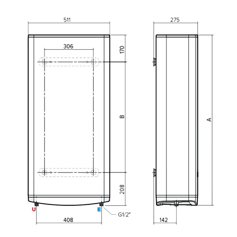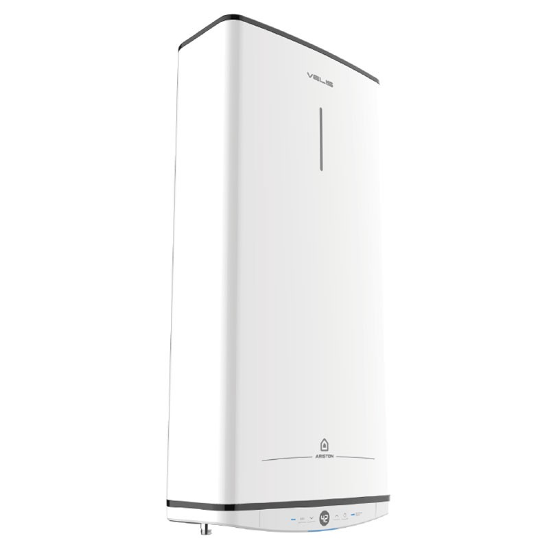 Chauffe-eau Electrique à accumulation Ariston VELIS PRO 100 litres, à fixation murale, ultra-mince et élégamment conçu pour une installation multi-positions.