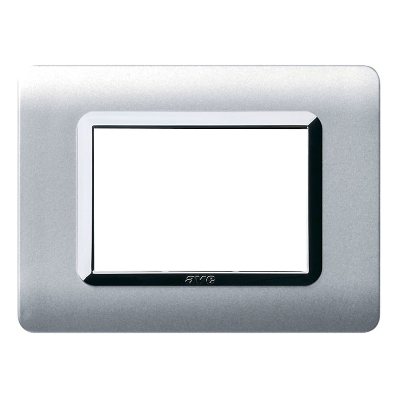 Plaque Ave Technopolymère Système 44 Aluminium naturel cadre chromé 3 modules 44PY03ALS