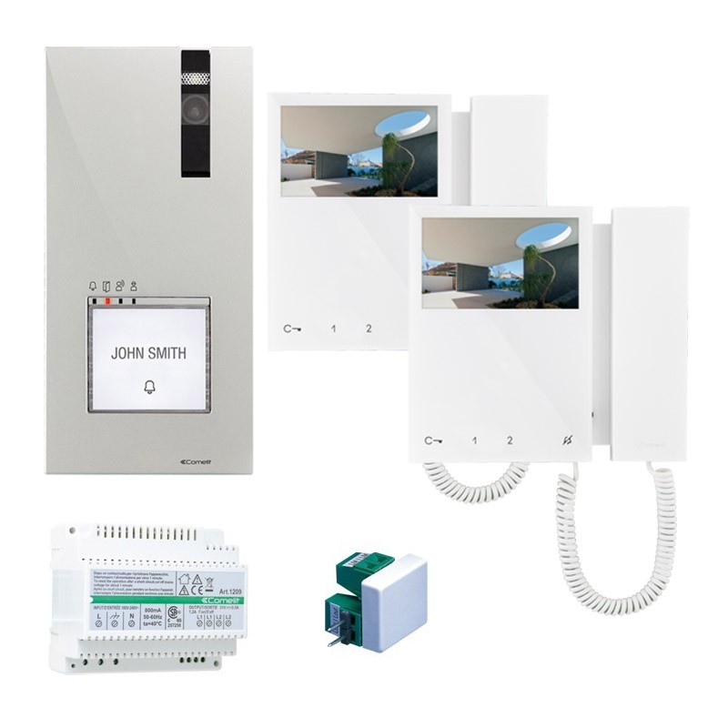 Kit de vidéophone à deux écrans Comelit à 2 fils avec vidéophone Mini et Quadra