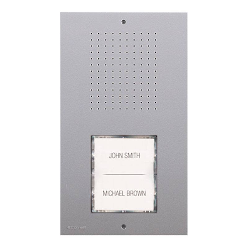 1 platine de rue (code CA5100B), avec bouton d'appel (code CA9214) : résistante aux intempéries, au design élégant et compact.