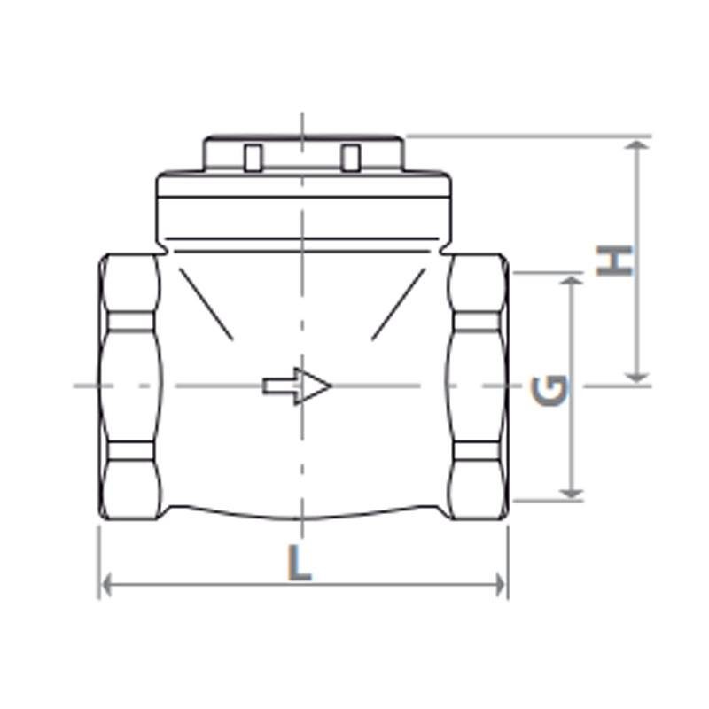 - Les clapets anti-retour à clapet peuvent être installés en position horizontale ou verticale en respectant le sens d'écoulement indiqué par la flèche estampillée sur le corps du clapet. En position horizontale, le clapet doit être installé avec le couvercle d'inspection tourné vers le haut, sinon le clapet ne peut pas fonctionner. En position verticale, le robinet ne fonctionne qu'avec le sens d'écoulement vers le haut. L'installation sur les conduites se fait au moyen de filetages, en utilisant les pratiques hydrauliques normales.