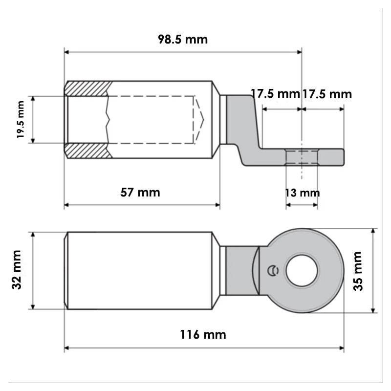 Conçue pour des conditions de travail extrêmes, la cosse de câble est certifiée pour une plage de températures allant de -50 °C à +150 °C. Elle convient aux tableaux de distribution, aux sous-stations MT, aux installations industrielles et à toutes les applications nécessitant une connexion entre des conducteurs en aluminium et des bornes en cuivre.