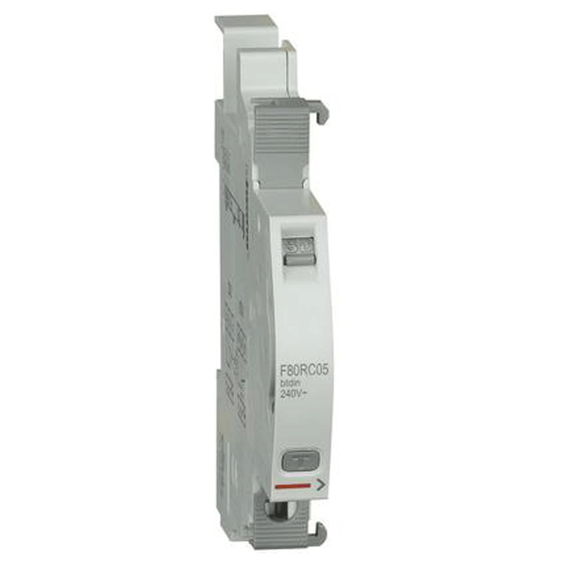 F80RC05 : contact auxiliaire pouvant être transformé en contact de signalisation de libération au moyen d'un sélecteur situé sur la face avant de l'appareil ; ½ module.