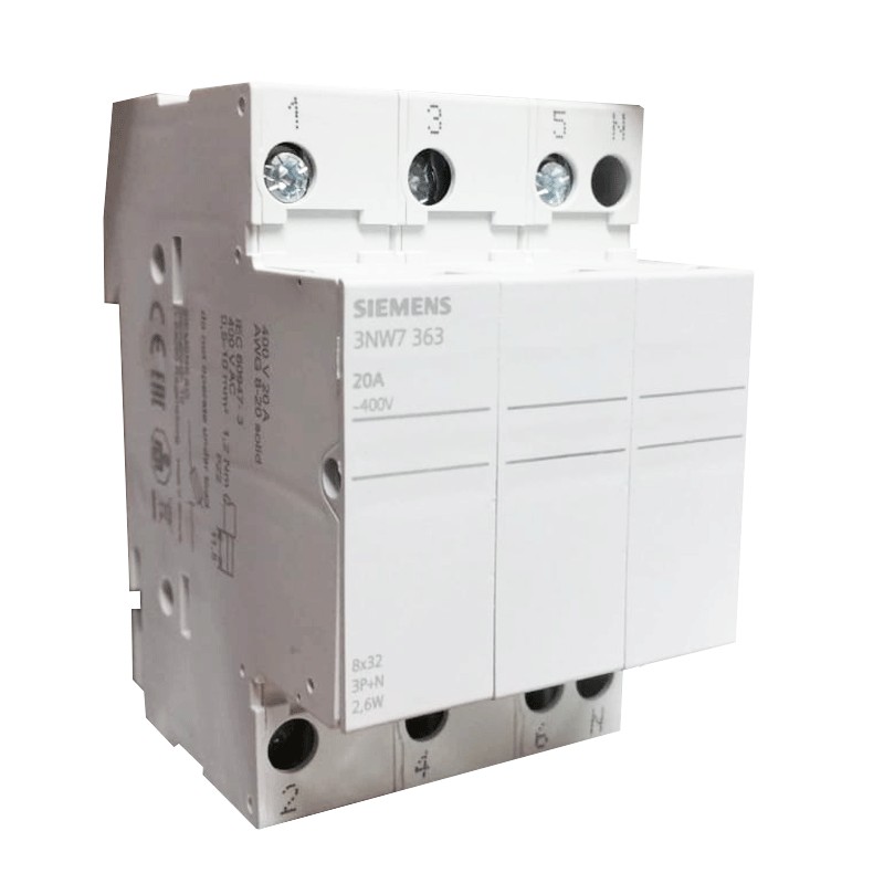 Porte-fusible Siemens cylindrique 3NW7 3P+N 8X32 20A 3NW7363