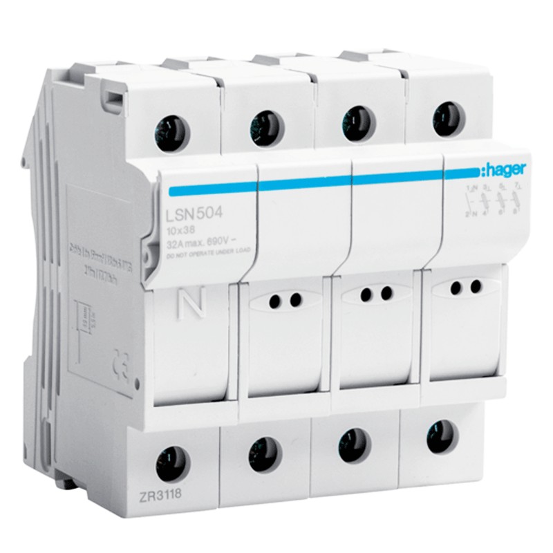 Porte-fusible Hager 32A 3P 400V L38 4 modules 10X38 LSN504