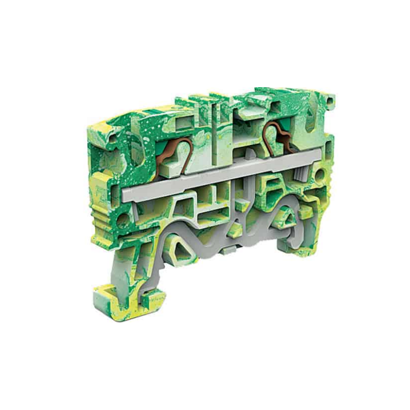 Pince à ressort Cabur avec technologie push-in de terre sur un seul plan, avec les caractéristiques suivantes :