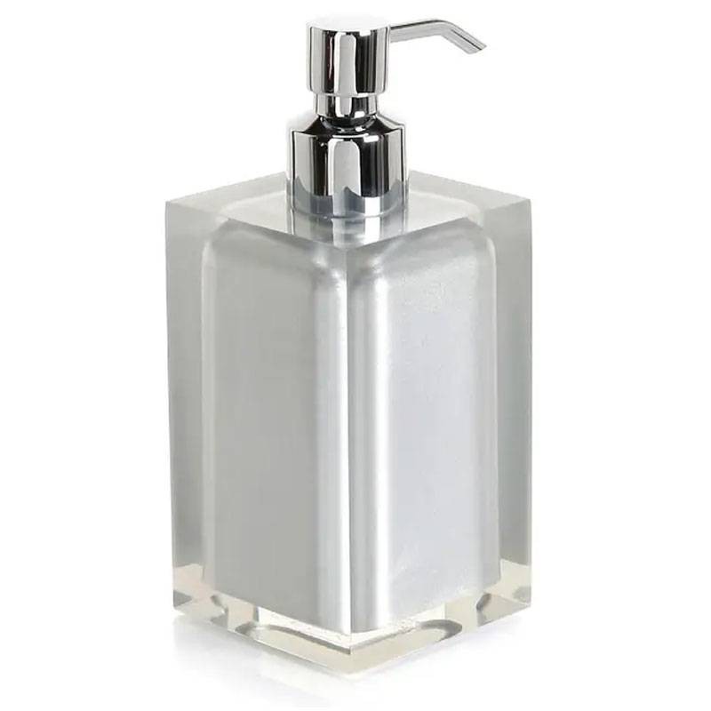 Distributeur de savon liquide Gedy Rainbow argent, en résine, dimensions 7x7x16,2cm, avec distributeur en plastique chromé.