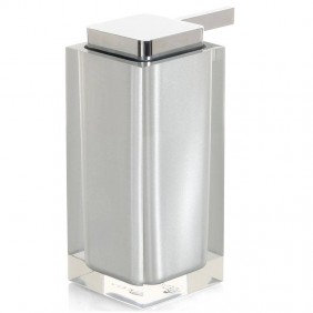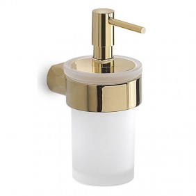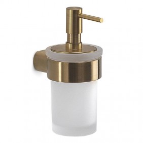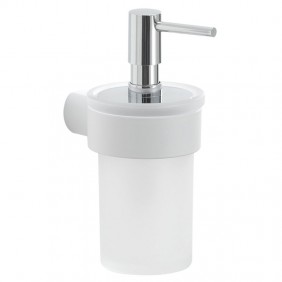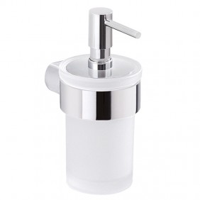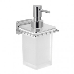 Distributeur de savon liquide mural Gedy en acier inoxydable et Cromall avec récipient en verre dépoli, couleur chrome, dimensions 6,8x10,7x15,9cm.