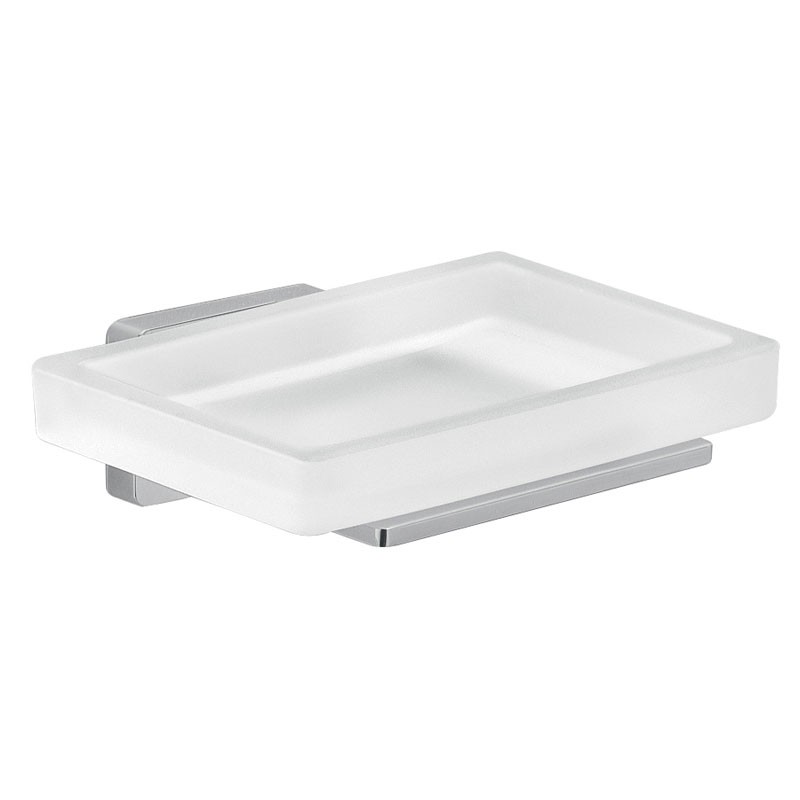 Porte-savon mural Gedy Atena en acier et Cromall, modèle chromé, avec récipient en verre dépoli, dimensions 11,5x10x3,9cm.
