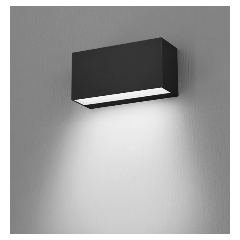 Luminaire à LED pour installation murale, avec faisceau mono-directionnel. HONGLI LED. Durée de vie 36 000h (efficacité 70%). Corps en aluminium moulé sous pression à faible teneur en cuivre, peint en gris, blanc ou noir anthracite. Le luminaire est équipé d'une base de fixation murale précâblée avec des bornes à connexion rapide. Verre transparent avec diffuseur microprismatique. Joints en silicone. Vis en acier inoxydable. Tableau LED à gradation avec tension de réseau 220-240V.