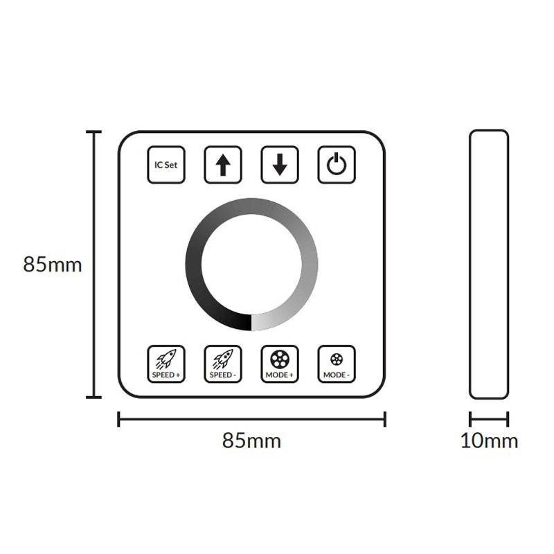 Contrôleur Dimmer mural pour bande LED Runner Ledco avec écran tactile en verre avec les caractéristiques suivantes: