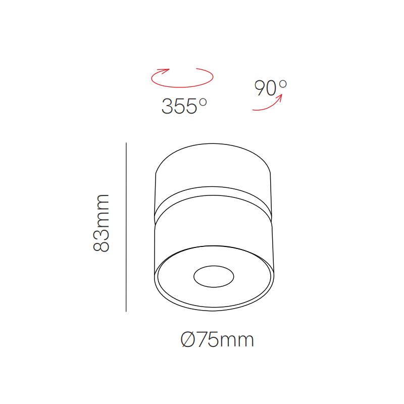 Concord a un angle de rayonnement de 40º, une rotation de 90º et un pivotement de 355º, ce qui permet d'intégrer le produit dans l'espace.