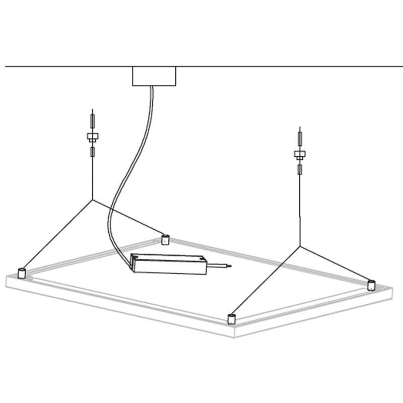 Le kit comprend 4 câbles en acier pour une suspension équilibrée, une rosace de plafond et un câble d'alimentation. Cette configuration permet de monter le panneau en toute sécurité, avec une finition élégante et minimaliste, adaptée aux espaces résidentiels et professionnels.
