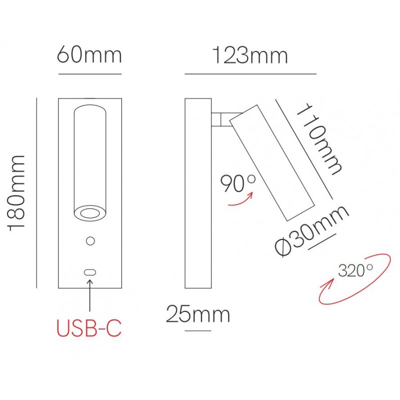 Lampe murale LED Beneito Faure série PURE BLANCO avec USB-C 5V 2A, avec les caractéristiques suivantes: