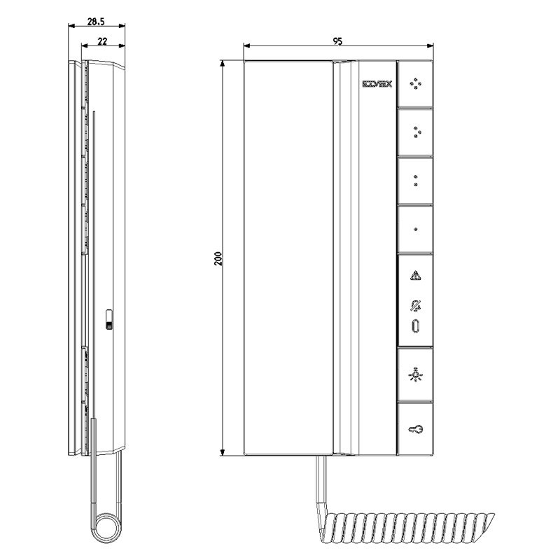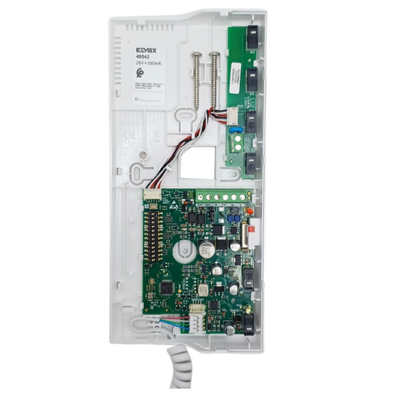 Interphone avec combiné Elvox Vimar VOXIE 2-Wire Plus 6 boutons pour les fonctions de déverrouillage et de service auxiliaire (lampe d'escalier), 4 boutons programmables pour les fonctions et les services auxiliaires, montage mural, blanc.