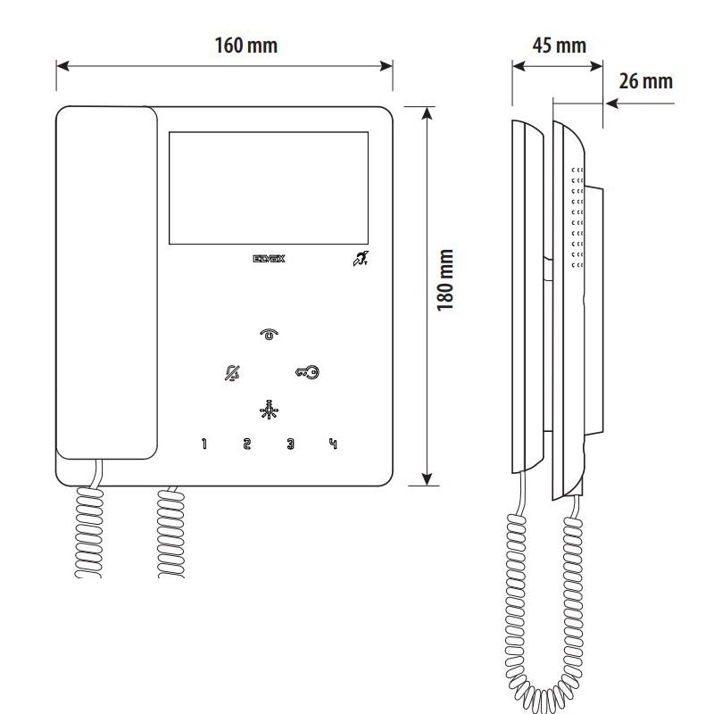 Moniteur mural de portier Tab pour système Two-Wire Plus avec écran couleur LCD de 4,3", combiné, haut-parleur pour la signalisation des appels, clavier capacitif pour les fonctions interphoniques (déverrouillage, allumage automatique, services auxiliaires, réglage du volume, de la luminosité et du contraste) et les appels interphoniques. Il est possible de différencier les sonneries pour les appels. Les alertes visuelles concernent l'ouverture de la porte/du portail et les "appels sans réponse du standard de la conciergerie", l'absence de l'utilisateur, la neutralisation de la sonnerie. Peut être utilisé par des personnes équipées d'appareils auditifs.