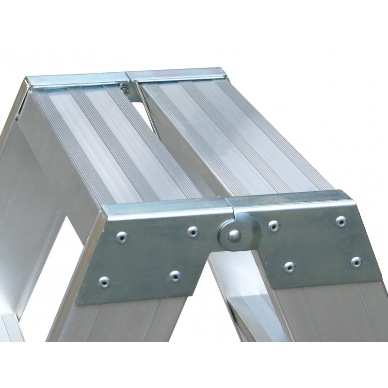 L'étape anti-dérapant mm de profondeur. 83 rejoint pour les cadres avec des soudures robustes caché de la vue de Mât fermé bobine mm. 80 x 23 Plateau terminal en aluminium mm. 200 x 300 Barre d'entretoise automatique sécurité anti-ouverture et anti-blocage en aluminium anti-rouille de Renforcement à l'extrémité inférieure de l'appui de la base anti-choc Pieds augmente avec surface anti-dérapante, Emballage de rétrécissement de film de forte 80 microns Année de production et de la marque du fabricant et le Livret de règles d'utilisation Adapté pour le travail dans les environnements industriels qui nécessitent un soutien, très stable et sûr dans toutes les conditions d'utilisation et qui permet de voyager pratique et rapide.