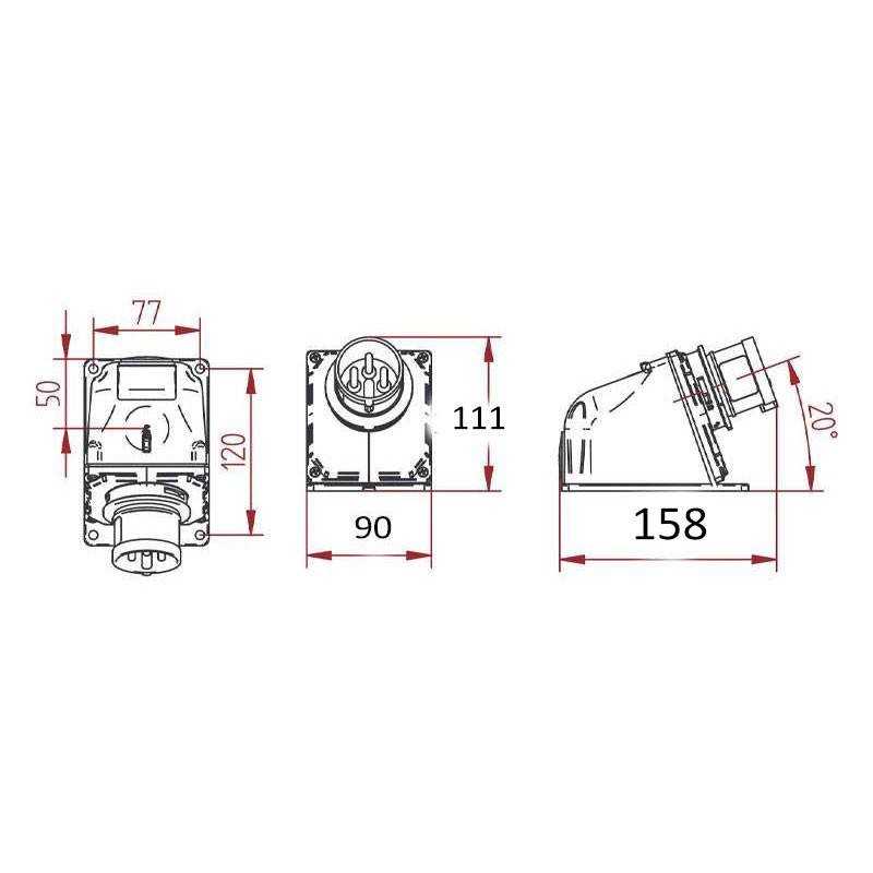 Fiche murale industrielle Fanton ARGO 3P+T 16A 400V IP44 rouge 70304