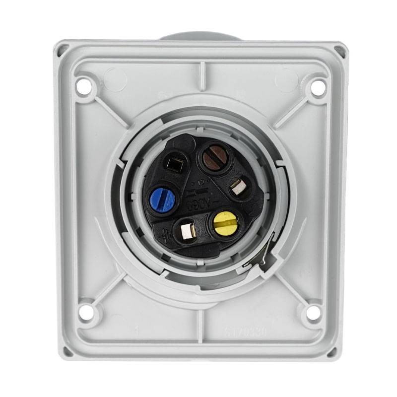 La prise encastrée industrielle inclinée Fanton est conçue pour les applications industrielles, offrant une connexion sûre, durable et fiable. Résistante à la poussière et à l'immersion temporaire, elle est idéale pour les environnements difficiles et présente les caractéristiques suivantes :