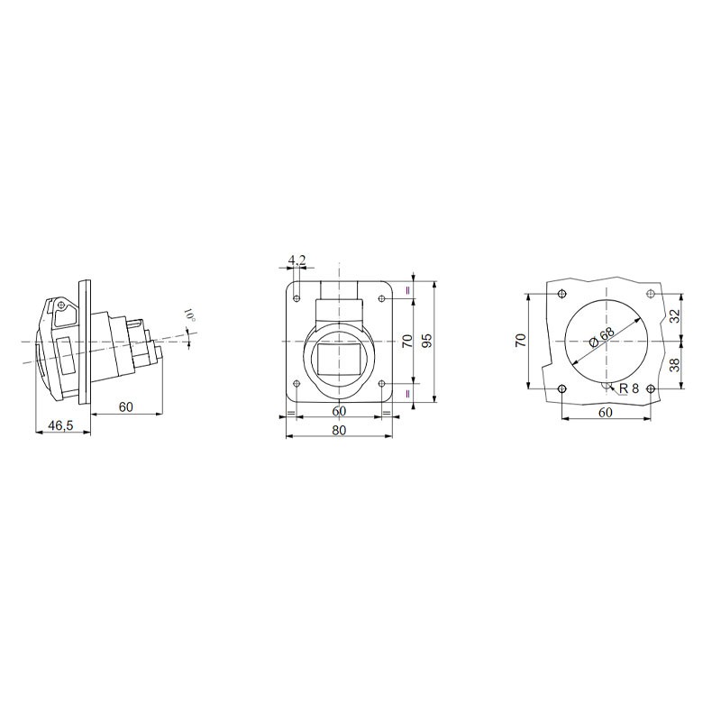 Prise fixe encastrée 10° HP Gewiss avec les caractéristiques suivantes :