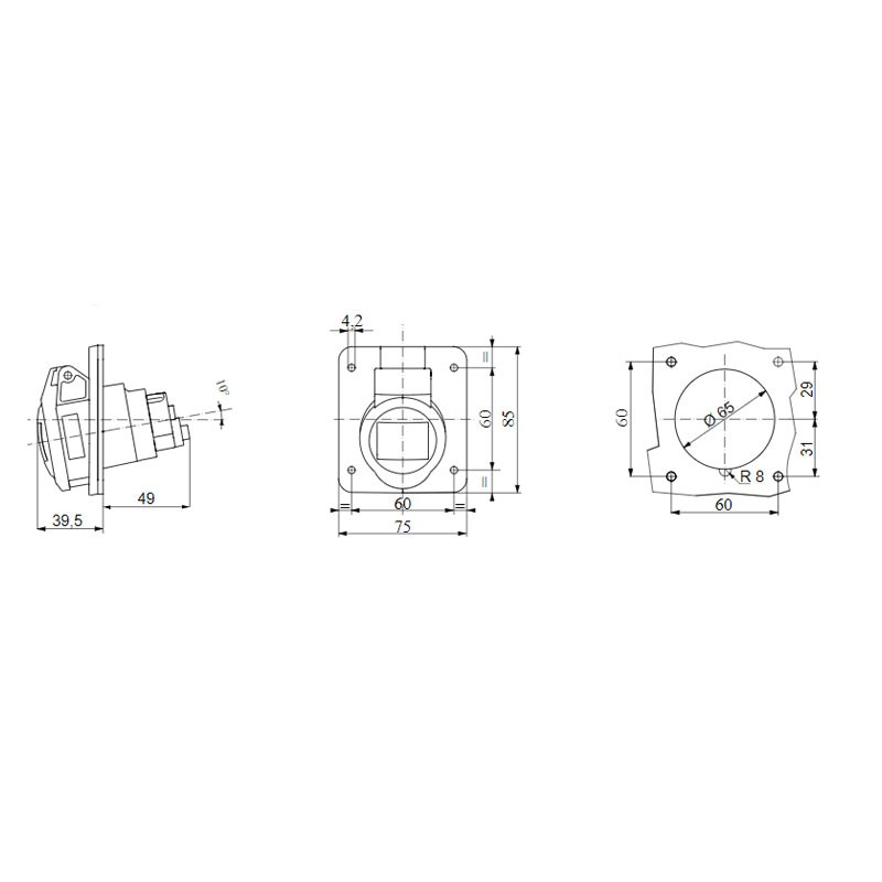 Prise fixe encastrée Gewiss 10° HP, avec les caractéristiques suivantes :