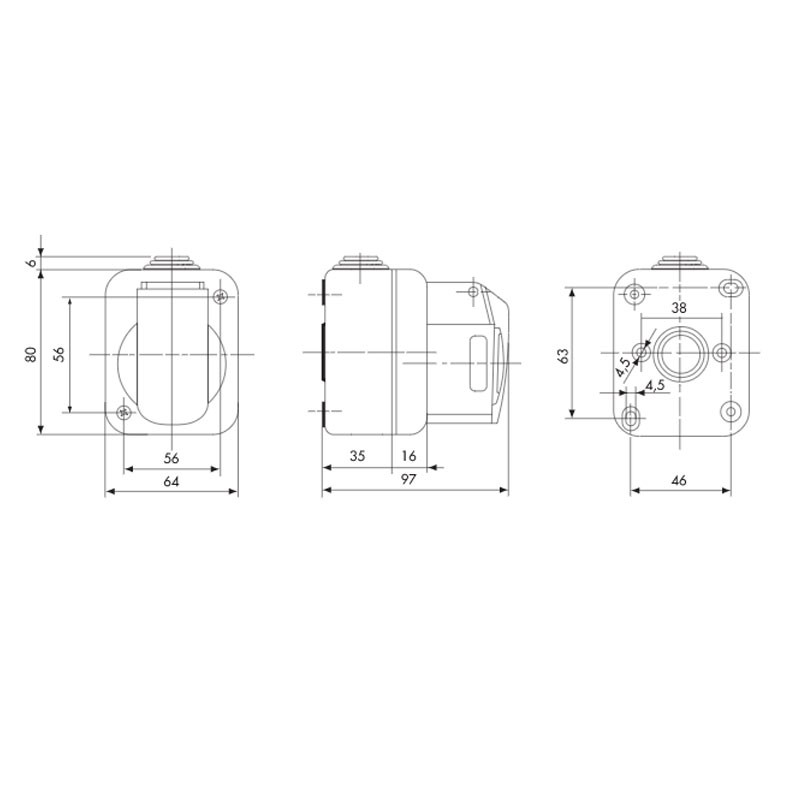 - Dimensions extérieures BxHxD (mm) : 64x80x97