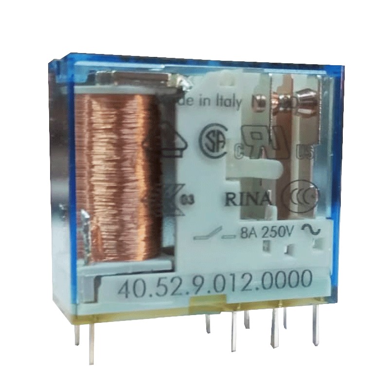 Mini relais industriel Finder pour circuit imprimé, avec les caractéristiques suivantes :