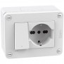 Boîtier Bticino MatixGO 3 modules IP40 avec interrupteur et prise schuko blanc 28403W2