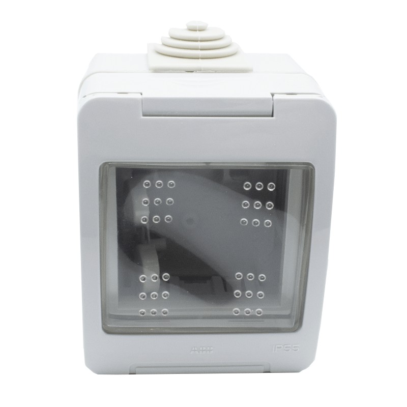 Boîtier mural ABB 2 places 2 modules, avec film de protection pour l'extérieur, couleur gris RAL 7035, degré de protection IP55.