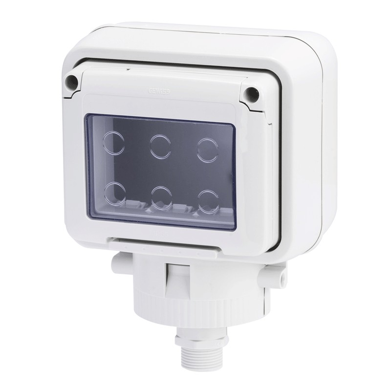 Boîtier pour les appareils du système Gewiss, étanche 3 places, fixation par tête poteau, couleur gris. Il est possible d'installer à l'intérieur tous les produits de la série Gewiss System.