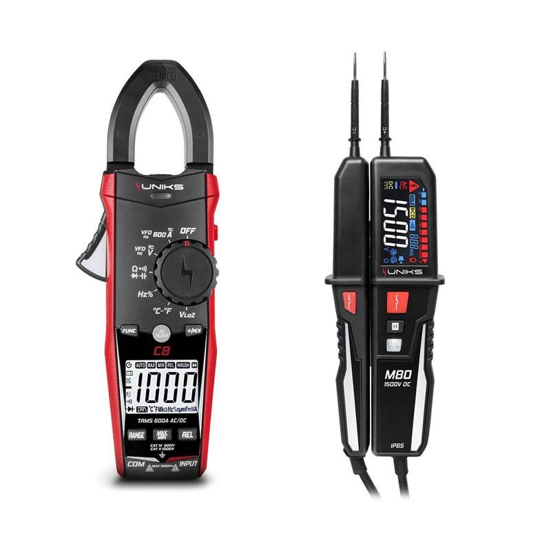 Ensemble, ces deux instruments offrent une couverture complète des principales mesures électriques requises dans les contextes modernes, vous permettant de travailler efficacement, en toute sécurité et avec un haut niveau de précision. Qu'il s'agisse de systèmes photovoltaïques, d'installations industrielles, de systèmes d'automatisation ou d'installations civiles, la combinaison Uniks C8 + M80 est un choix indispensable pour tout électrotechnicien qualifié.
