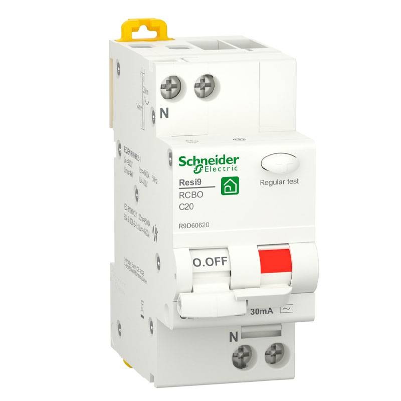 Magnétothermique différentiel Schneider 20A 1P+N C 30mA 4.5KA Type AC R9D60620