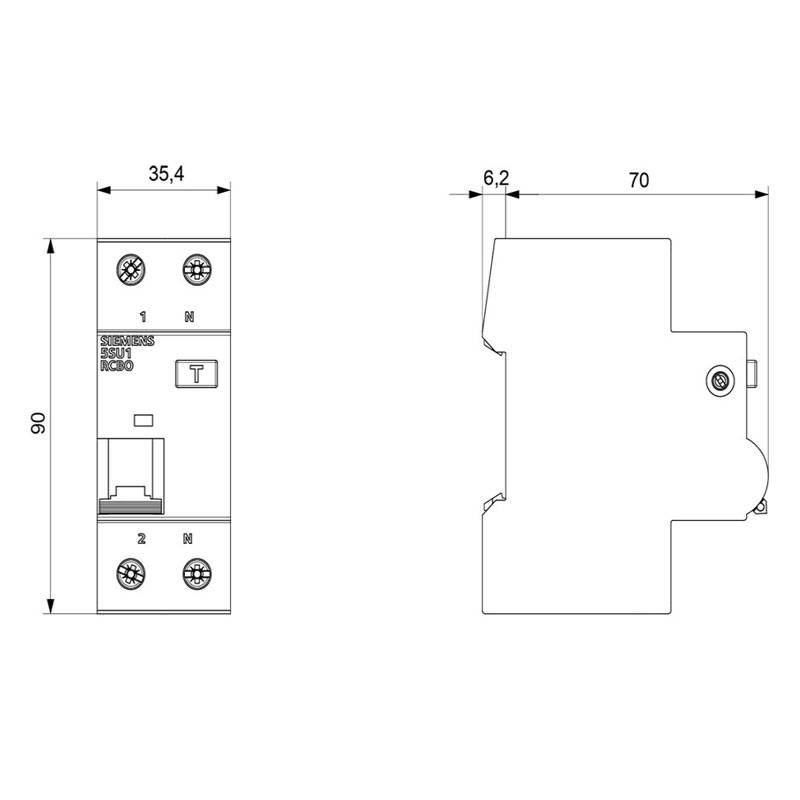 Interrupteur Magnétothermique différentiel Siemens RCBO 5SU13537KK25 avec les caractéristiques suivantes :