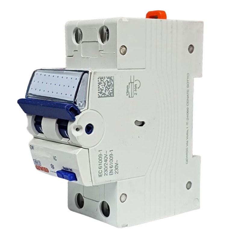 Disjoncteur différentiel Gewiss 25A 2P 30MA AC 4.5KA 2 modules avec les caractéristiques suivantes