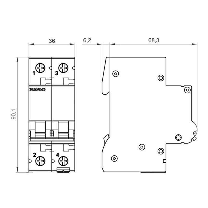 Interrupteur magnétothermique Siemens 2P 25A 6KA 2M B 5SL62256BB