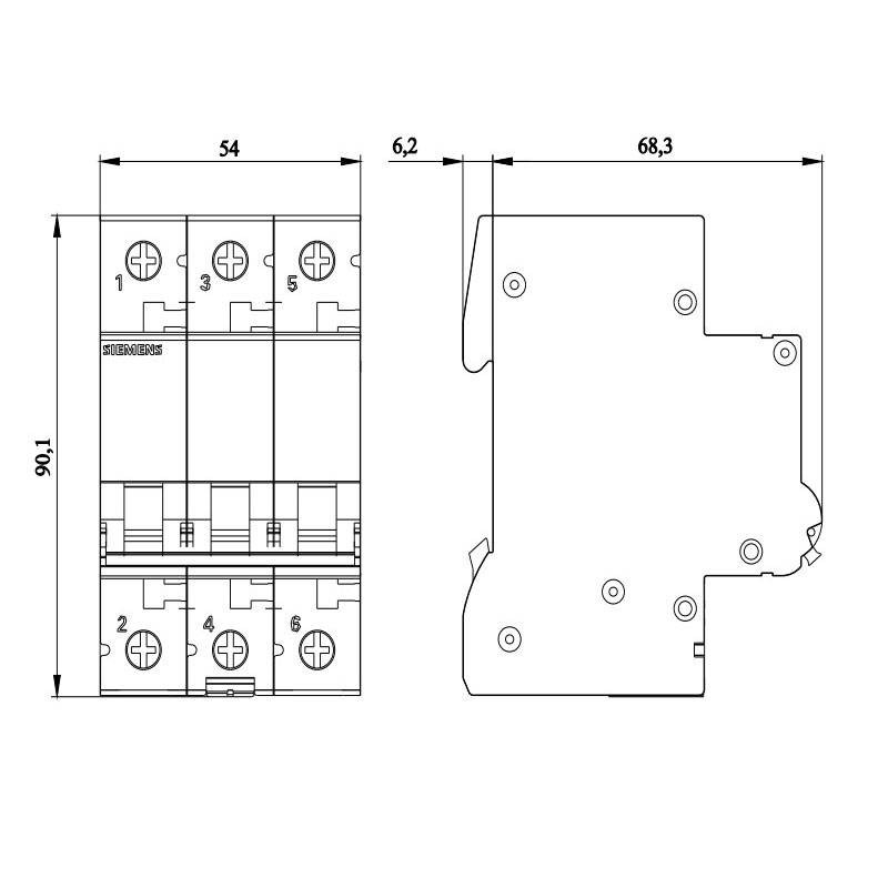Interrupteur Magnétothermique Siemens pour la protection triphasée fiable et compacte des installations industrielles et tertiaires, avec les caractéristiques suivantes