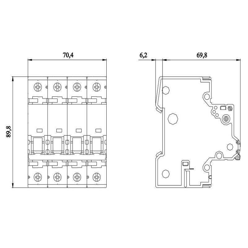 Adapté aux installations industrielles ou commerciales avec des moteurs ou des équipements électriques de grande taille. Il occupe 4 modules dans les tableaux de distribution.