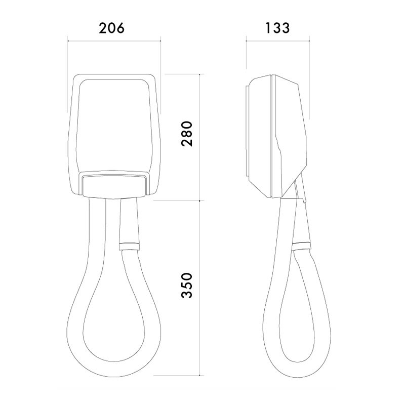 - Dimensions (LxPxH) 206 x 133 x 280 + 350 mm de tuyau