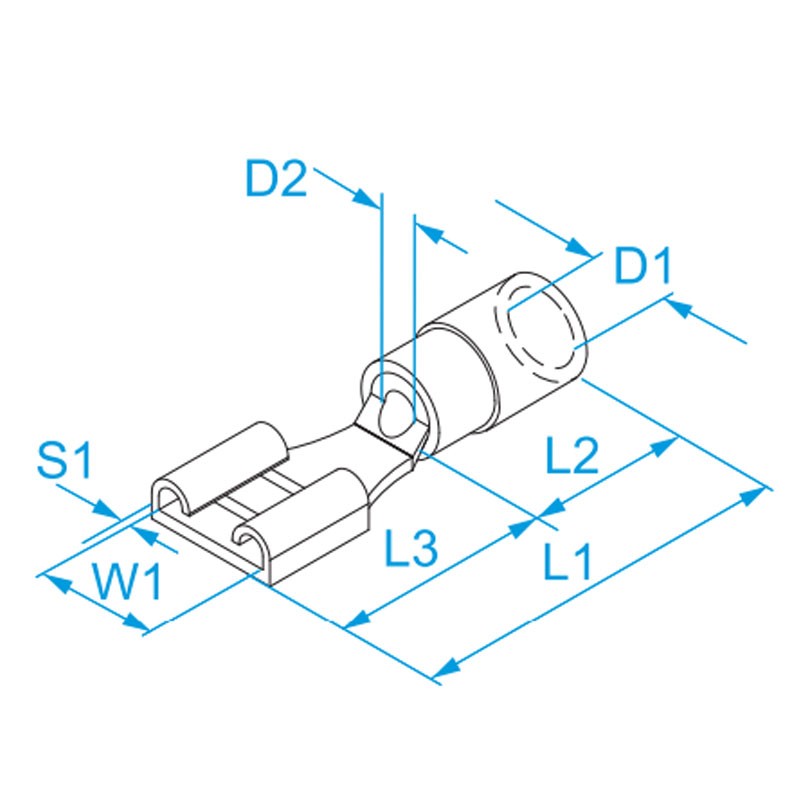 - Dimensions W1 (mm) L1 (mm) L2 (mm) L3 (mm) D1 (mm) D2 (mm) S1 (mm) : 6,6 20,7 10 7,8 3,8 1,9 0,8