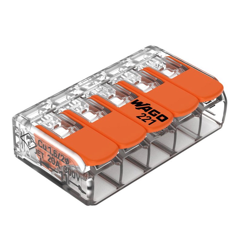 25 pièces Borne de jonction avec leviers à 5 conducteurs 4 mm² (221-415)