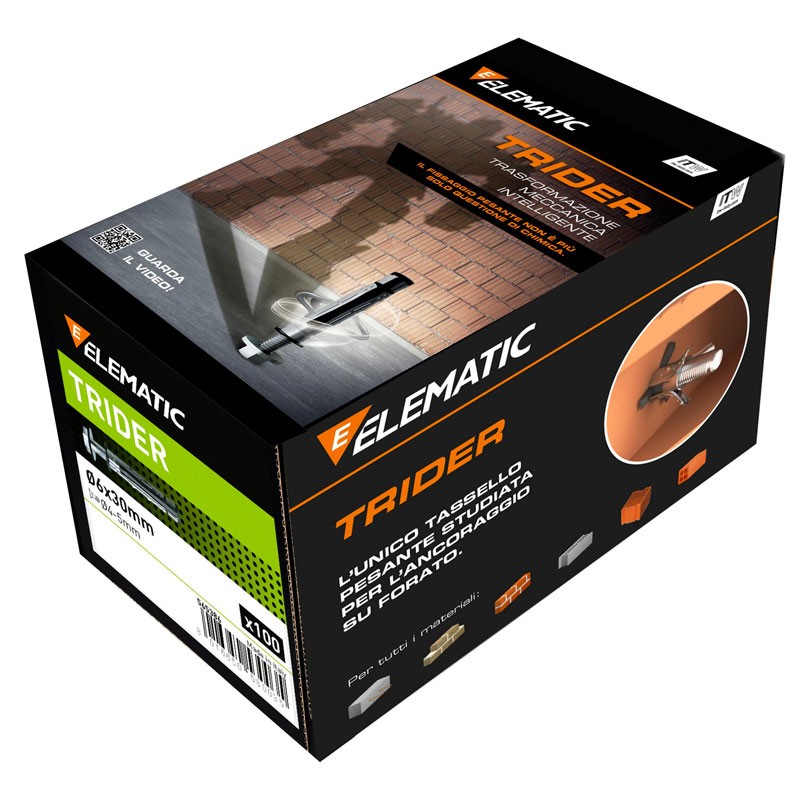 Grâce à son expansion spéciale et à sa flexibilité, Trider supporte des charges lourdes, sur différents matériaux de construction, avec un ancrage toujours efficace et fiable ;