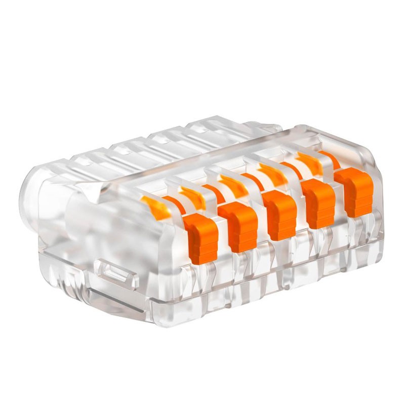 Bornier universel transparent à 5 pôles sans vis Obo Bettermann pour le raccordement rapide et sûr de conducteurs rigides et souples jusqu'à 2,5 mm², avec les caractéristiques suivantes
