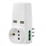 Triple adaptateur Vimarde couleur blanc avec 2 prises USB, 2 prises 10A et 1 prise schuko 10A.